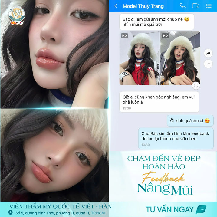 Với những ưu điểm toàn diện trên, Việt Hàn là địa chỉ nâng mũi uy tín, giúp bạn sở hữu dáng mũi đẹp tự nhiên, bền lâu và an toàn, vượt trội hơn các cơ sở thông thường. Khách hàng sẽ yên tâm đến làm mà không cần lo lắng về biến chứng hay kết quả nâng mũi.